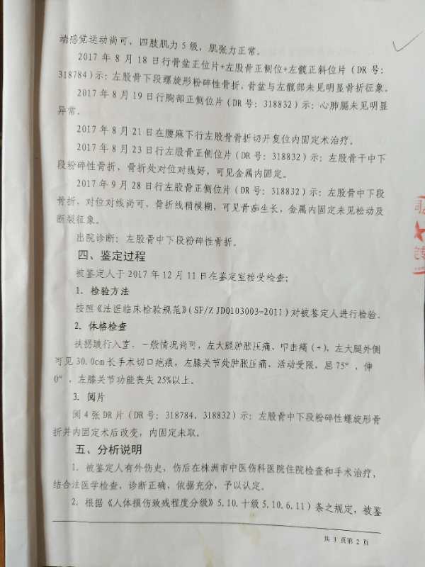 伤情鉴定为轻伤一级。