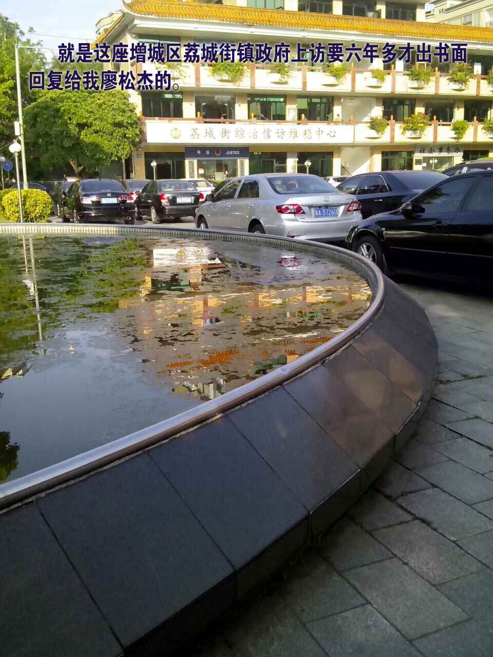 后来我叫人把我三宗冤案的事实资料送上北京后,只得到了一份增城国土局又是不受理的复函和收到过国家信访局的一条手机信息,就是指我走法律途径,以及得到了增城区荔城街党的群众路线教育实践办公室301号房黄海峰领导叫我等人到去递交了三宗冤案的证据资料,了解清楚我的事实后,还亲口表态,叫我廖松杰放心,如今已有人跟踪我廖松杰案件的,在一到两个星期内就会有人找我廖松杰解决三宗冤案的,但最后也没有下文了。另外,在2015年6月,我花有2000多元还到过广东省深圳市罗湖区红岭中路中央的第一巡回法庭,想递交材料申诉,但第一道关的三位法官审查过我案件资料后,也认为可以受理;第二道关两位法官也审查过我案件的资料,也认为可以受理;并把我的两宗大冤案的资料输入电脑里,第三道关是巡回法庭的第三号房接访室的法官,看了我的案件三分钟后就给我们增城政府打了一个电话谈了两分钟,最后就只是对我说,他们是绝对不会受理我廖松杰案件的,就把我赶走了。到底在电话上我们增城政府又跟巡回法庭三号接访室的法官说过什么话呢?