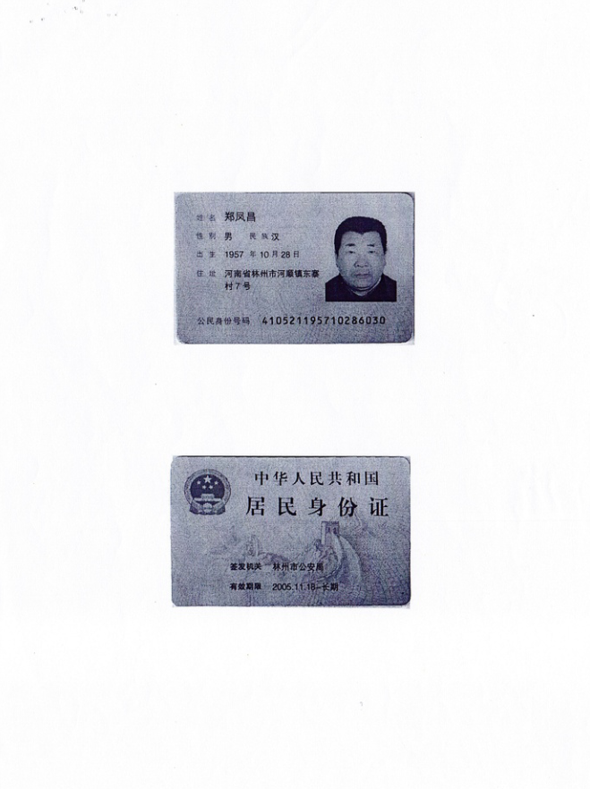 我叫郑凤昌,现年60岁,男,系河南省林州市河顺镇东寨村村民。