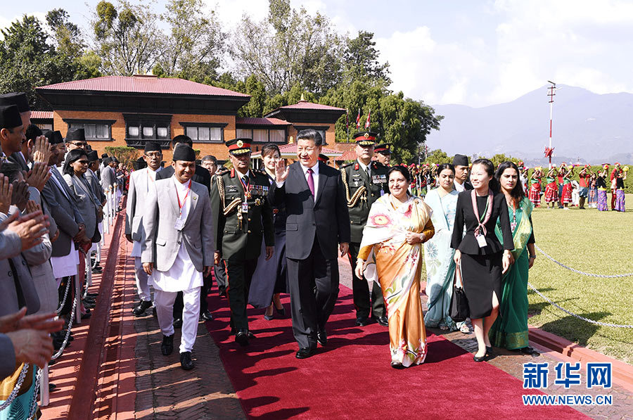 10月的加德满都,阳光灿烂,云卷风舒。喜马拉雅山巍峨耸立,见证着尼泊尔人民对中国领导人的深情厚谊。习近平抵达机场,班达里总统上前迎接。盛装的尼泊尔艺术家载歌载舞,少年儿童手持中尼两国国旗,用中文欢呼“习爷爷再见!”“我们爱您!”“欢迎您再次访问尼泊尔!”。习近平向欢送人群不时挥手致意。