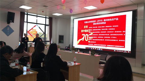 2019年11月1日,由钓鱼台食品生物科技有限公司、贵州黔菜出山农业发展有限公司、贵州京黔农业发展有限公司联合发起的“钓鱼台·黔货进京(2019)贵州特色农产品展会”项目说明会在贵安新区电商城-贵州京黔农业发展有限公司二楼会议室召开。据京黔农业公司总经理杨雄介绍,为了办好此次展销会,钓鱼台食品生物科技有限公司总裁朱平豆先生及其团队在贵州京黔农业发展有限公司副董事长郝劲松的带领下,走访调研企业100余家。同时经钓鱼台宾馆管理局领导与贵州省政协、贵州省工商联李主席多次协商,得到了他们的肯定和支持。为此,钓鱼台食品生物科技有限公司赵建斌总经理专门批示成立了50人的黔货进京项目小组。经过近3个月的紧张准备。决定在2019年12月7日在北京钓鱼台玉渊潭公园举办黔货进京展销会。