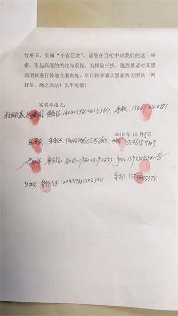 对综上村霸李清兵涉黑涉恶等累累犯罪行为,我们屡次举报,屡次无果,不排除村霸李清兵用他侵吞的巨额不义之财,在原长治市郊区网织了一张无形的保护伞及利益输送链条体系。因此,李清兵 在从严治党、严惩腐败、扫黑除恶并举的高压态势下,仍不收敛,仍不收手,继续顶风作案。